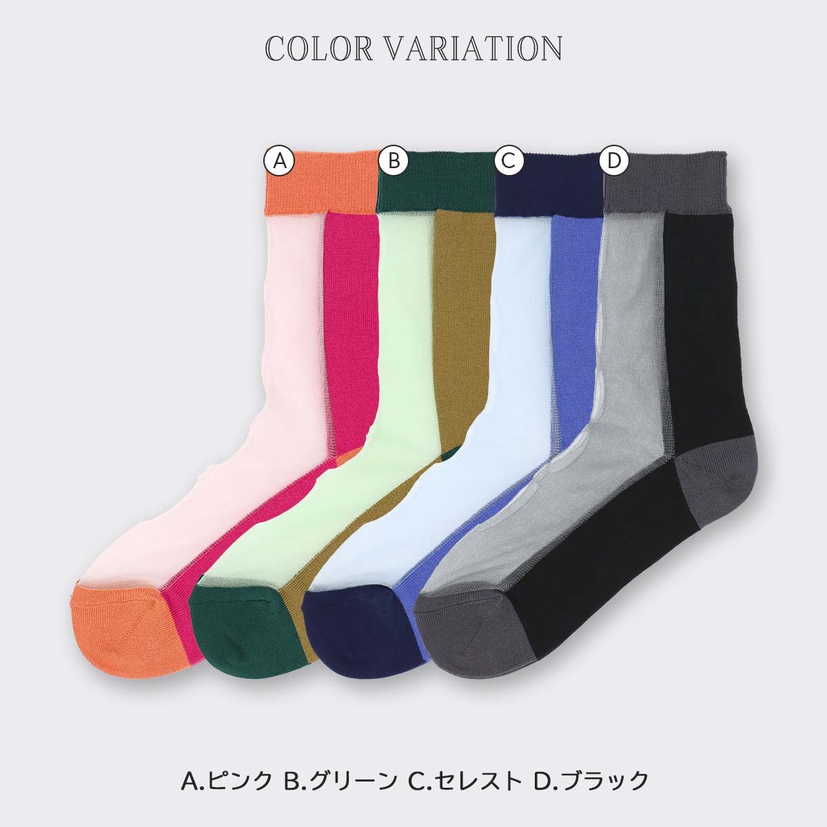 ブロッキング シアー クルー丈 レディース ソックス