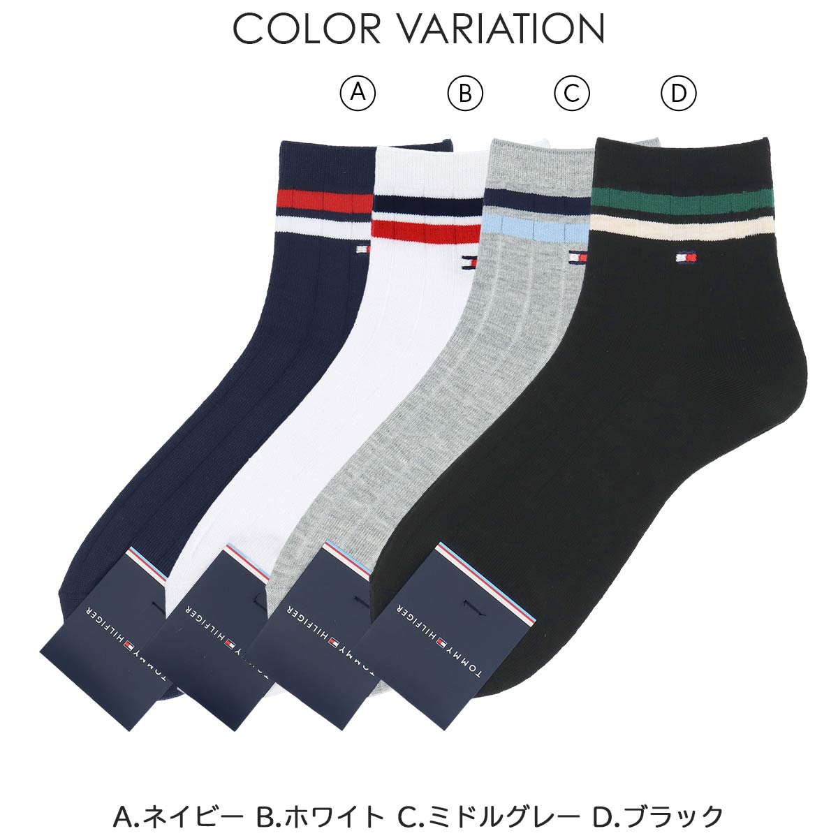 トミーヒルフィガー 2ライン CLASSIC リブ フラッグ 刺繍 20cm ミドル丈 カジュアル ソックス